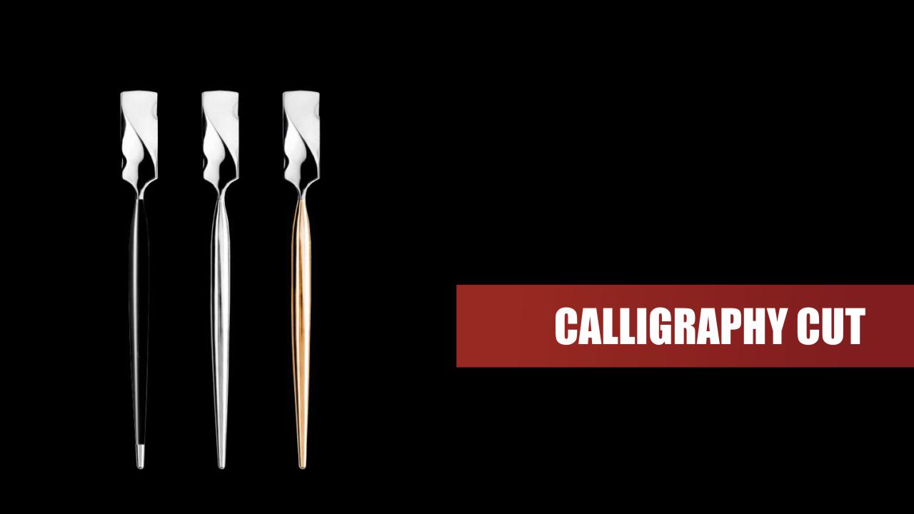 Calligraphy ist eine einzigartige, revolutionäre Schnitttechnik! Inspiriert wurde sie von traditionellen Zeichentechniken aus Asien. Bereits die alten Ägypter nutzten diese besondere Form des Schönschreibens. Heutzutage wird Kalligrafie vor allem in Asien, und dort speziell in Japan, gelehrt und angewendet.